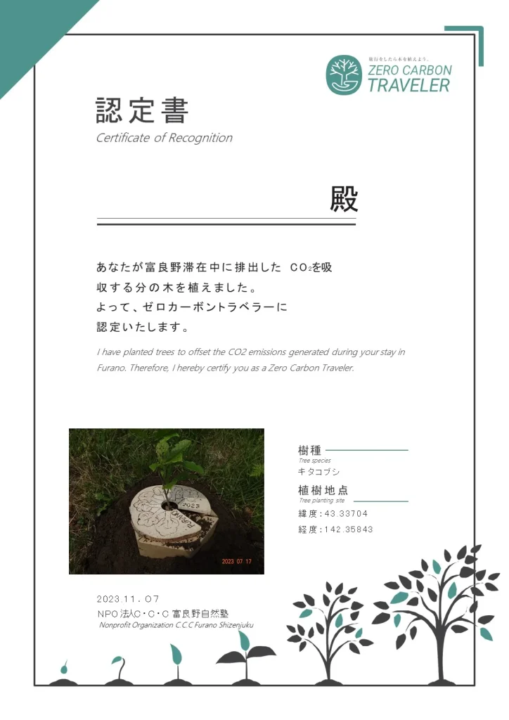 ゼロカーボントラベラー 『富良野に来たら、木を植えて帰ろう🌳』